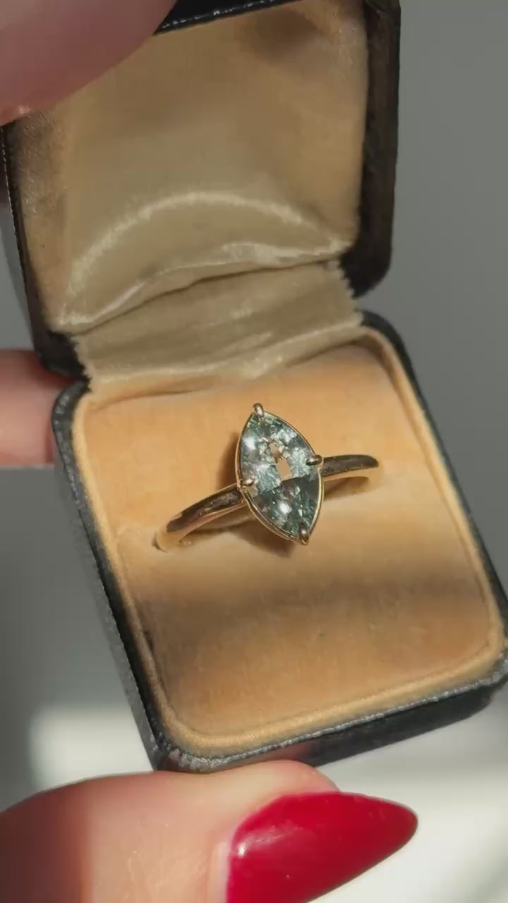 1.66 carat carat natural marquise cut light green sapphire (11.03 x 6.01 mm).  The sapphire was ethically sourced from